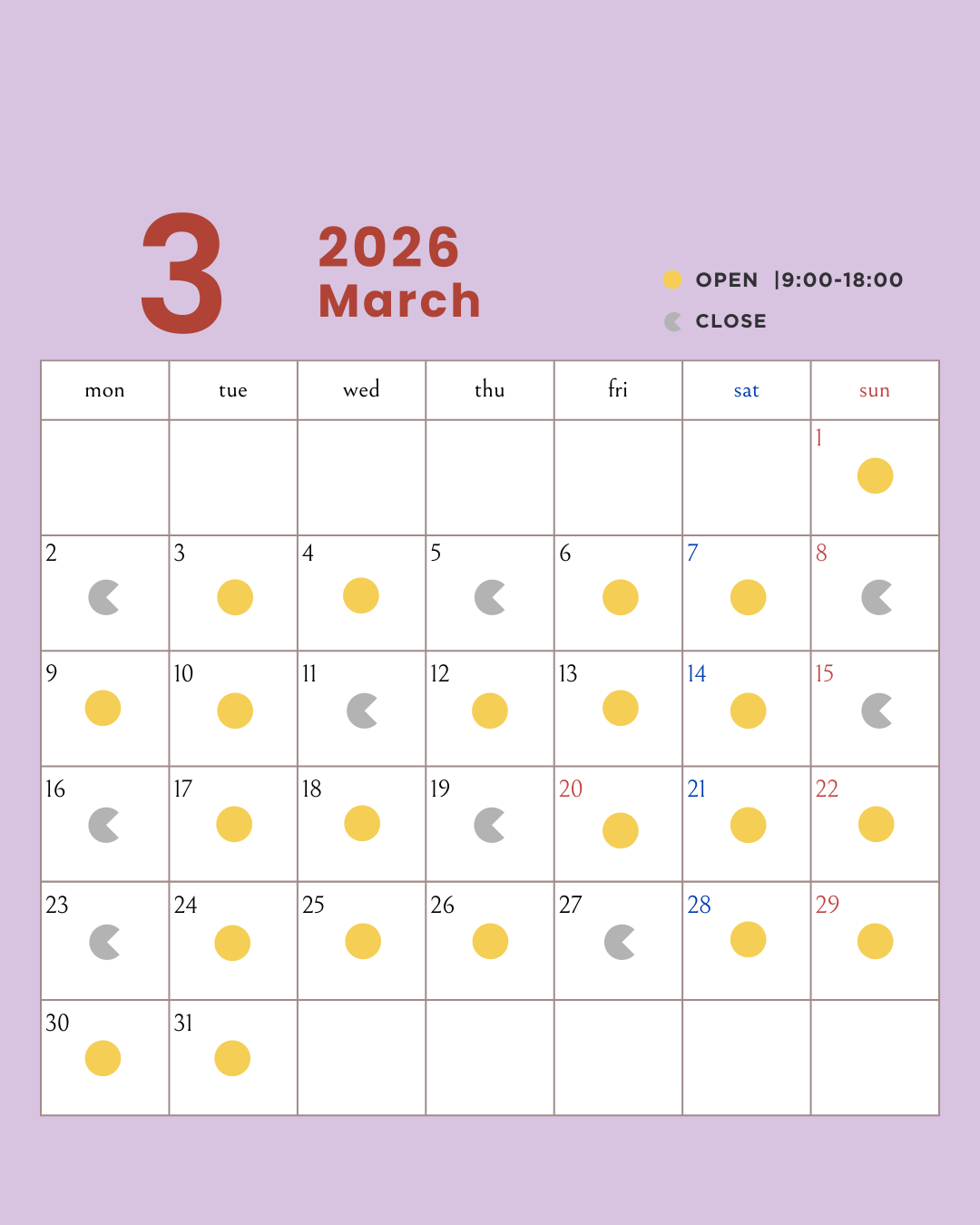 3月診療日のご案内