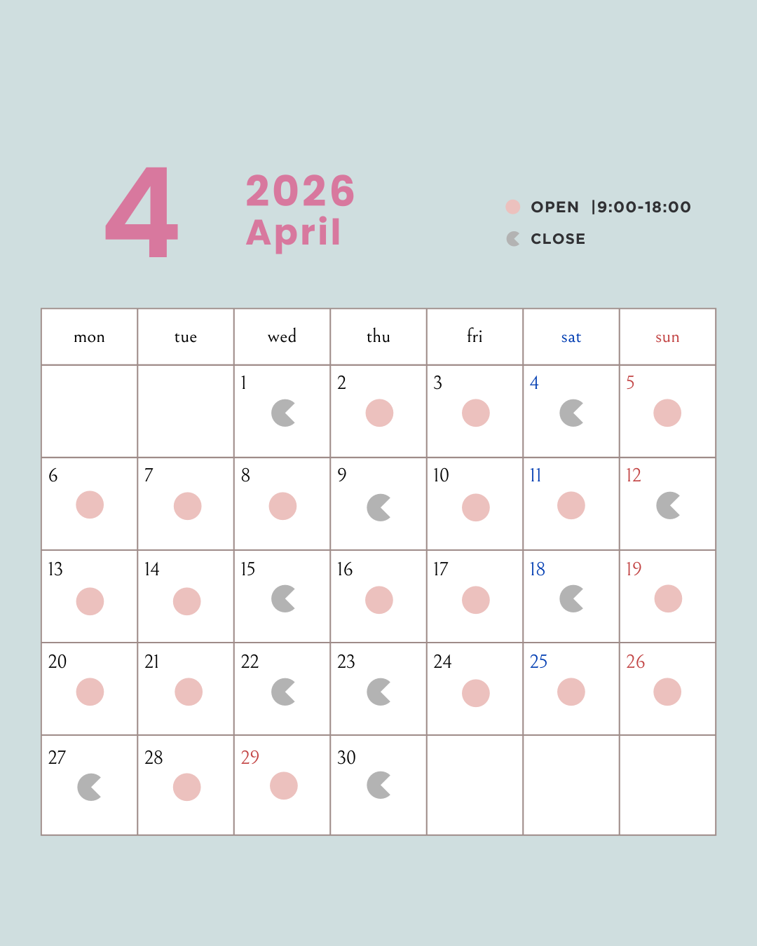4月診療日のご案内