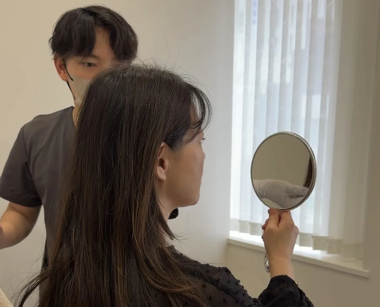 注入が終わりましたら、止血を確認し、施術後の注意事項をご説明します。直後からメイクが可能ですが、注入部位を強く擦らないようにご注意ください。パウダールームで身支度を整えてご帰宅いただけます。